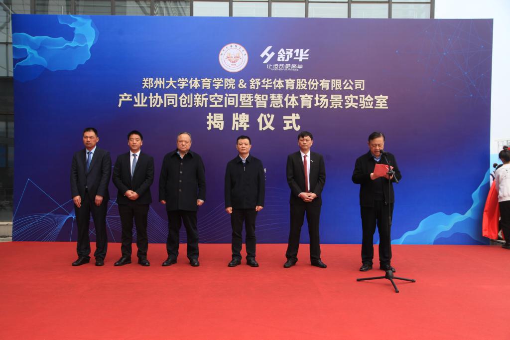 3月11日上午,郑州大学体育学院 舒华体育产业协同创新空间暨智慧体育场景实验室揭牌仪式在我院图文信息大楼图书馆前隆重举行。河南省体育局副局长黄家明、郑州大学体育学院党委书记张绍通、舒华体育股份有限公司副总裁张维俭等嘉宾出席仪式。仪式由副院长宋应华主持。