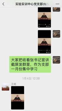 2023年1月4日,实验实训中心全体党员于线上自主学习张绍通书记《学习贯彻党的二十大精神 踔厉奋发勇毅前行》的主题宣讲视频。