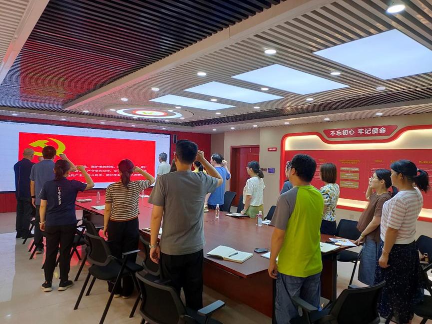 在图书馆党支部书记张勇的带领下,全体党员重温入党誓词,并听取了由马克思主义学院院长刘颖的《学习党纪处分条例 严格遵守党的纪律》的精彩党课。
