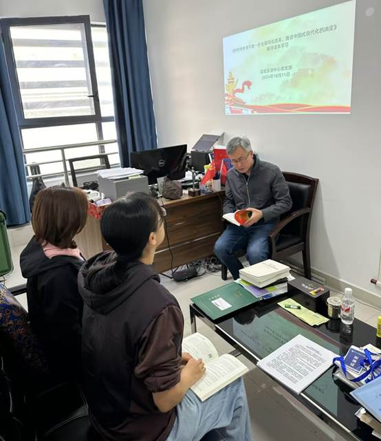 2024年10月11日,实验实训中心全体党员在图文信息楼712举行了学习《中共中央关于进一步全面深化改革、推进中国式现代化的决定》辅导读本和党的二十届三中全会《决定》学习辅导百问的主题党日活动。